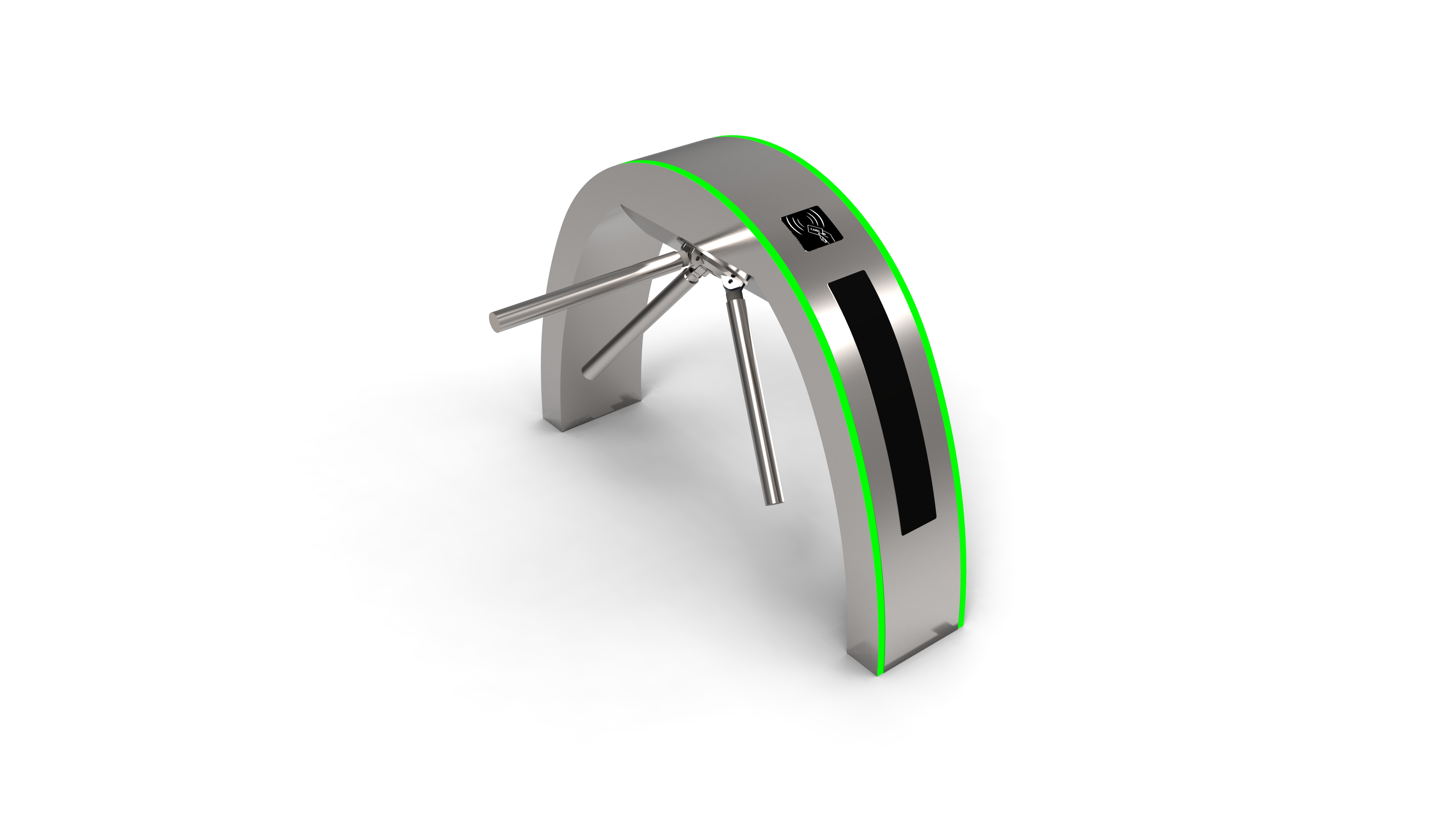 整個三輥閘產品外形采用SUS304不銹鋼板沖壓成型,造型美觀大方,防銹、耐用,能抵抗外力破壞。長方形機箱與通道閘桿構成的通道可為出入人員提供有序文明的通行方式,杜絕非法出入,并在緊急情況下快速控制落桿或收桿。